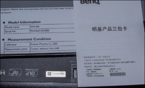 明基W4100i影院投影機在出廠之前每一臺機器都經過專業畫質工程師的精心調校,每一臺機器都會附上調校報告,色彩調校報告、機器、三包卡三碼合一,實現了真正的“色彩”校準追溯。
