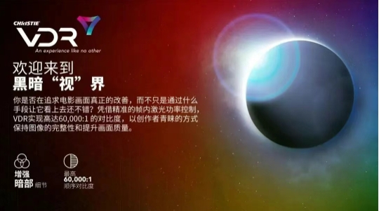 VDR 是科視應用于 CineLife+™ 系列激光放映機的創(chuàng)新技術,通過軟件升級實現(xiàn),無需額外硬件。