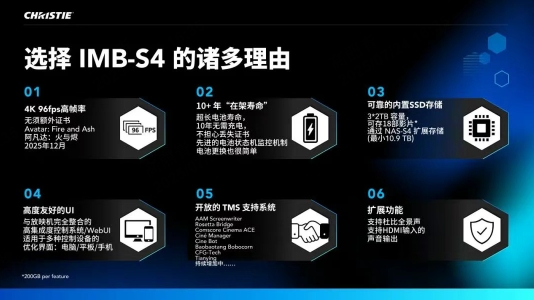 CineLife+ IMB-S4 媒體模塊也亮相展臺,作為系列高度集成化媒體模塊,適配全線 CineLife+ 系列第四代放映機。