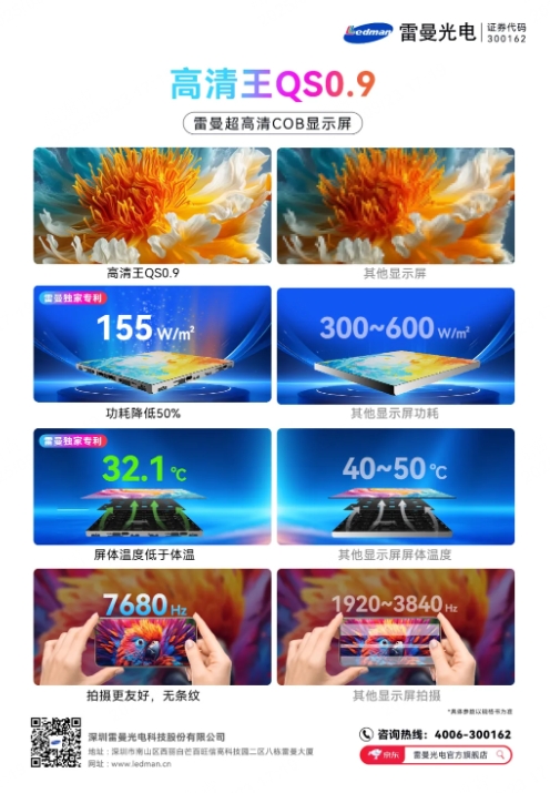 雷曼光電今天宣布,向國內(nèi)、國際市場推出下一代基于PSE專利的高清王COB系列顯示產(chǎn)品,主推型號為QS0.9。