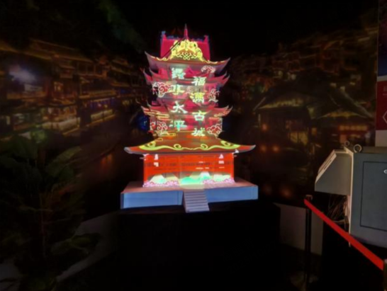 贏康為太平古城縉福樓投影秀設(shè)計的原創(chuàng)媒體片源,精準(zhǔn)抓住了全椒歷史文化精髓和精神氣質(zhì),以兼具故事性,創(chuàng)新性和歷史底蘊的影片贏得了用戶和游客們的贊賞。與此同時,贏康還圓滿完成了投影系統(tǒng)的設(shè)計與實施工作。活動現(xiàn)場,贏康借助等比例模型,精準(zhǔn)還原了投影秀的實際呈現(xiàn)效果。此次投影所采用的是 1DLP 科視 DWU1800 - JS 投影機。
