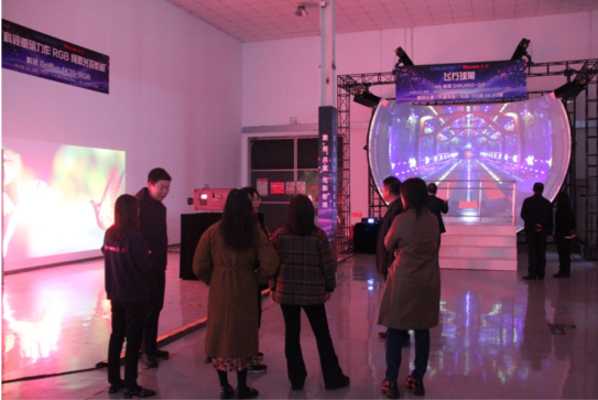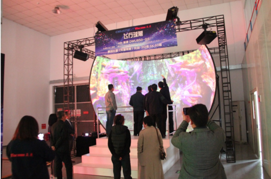 除上文中所提及的動感球幕影院和建筑投影之外,客戶們還在贏康展廳內(nèi)體驗了沉浸式互動空間、L型沉浸式虛擬現(xiàn)實協(xié)同工作系統(tǒng)、緊湊型CAVE,參觀了新一代飛行模擬器、透明顯示、LED新一代技術(shù)和應(yīng)用演示等展項。
