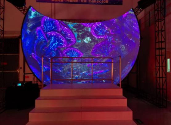 影院使用了9臺科視1DLP激光投影機DWU850-GS,其亮度為8400 流明,采用20000小時壽命的激光熒光照明系統(tǒng),支持24小時不間斷運行,內(nèi)置BoldColor色彩引擎與幾何校正功能,支持多機色彩同步和曲面融合投影,低噪音運行非常適合沉浸體驗項目。