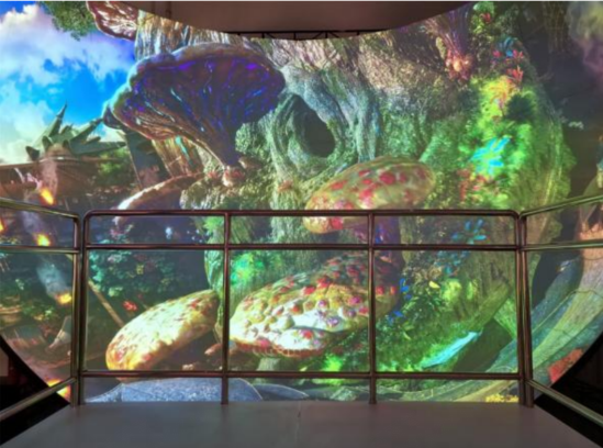 飛行球幕影院是贏康推出的一體化產(chǎn)品。它搭配 6K 60 幀的原創(chuàng)片源《異星奇旅》,宛如為客戶打開了一扇通往奇幻世界的神秘大門,引領(lǐng)客戶開啟一場驚險刺激、仿若身臨其境的“飛行”之旅。