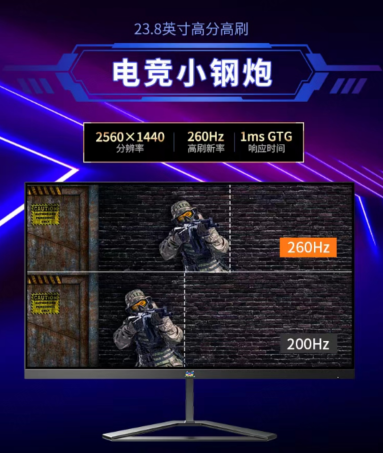 在電競競技領域,每一毫秒都可能決定勝負的歸屬。VX24G81-2K實現了原生240Hz刷新率并支持超頻至260Hz的突破性性能,這不僅僅是技術上的革新,更帶來體驗上的提升。相比于傳統60Hz或144Hz標準,VX24G81-2K在FPS、MOBA、賽車等高速動態游戲中能夠帶來更順滑的畫面表現。配合1ms GTG響應時間,玩家的每一個轉身、每一次瞄準、每一發子彈的軌跡都能以近乎實時的方式呈現,消除畫面撕裂、拖影與模糊現象。