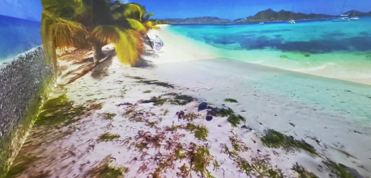 切換至海底秘境,地面鋪展著熒光珊瑚叢,細碎魚群隨腳步輕擺,墻面礁巖與珊瑚群無縫銜接,連珊瑚的紋理都在投影機的高清投射下清晰可見,仿佛一腳踏入深藍海底,轉瞬間又跳轉為海上游艇;地面化作澄澈漸變的海面,墻面映出白帆游艇與綠意海島;腳邊 “船舷” 的質感細節,讓訪客錯覺的以為正站在游艇甲板眺望碧海;再一轉身,空間又變換成了熱帶沙灘,地面是沾著海藻碎的白沙,墻面棕櫚葉的光影落在 “沙面”,連石子的肌理都被精準投射,仿佛海風正從椰林間吹過。