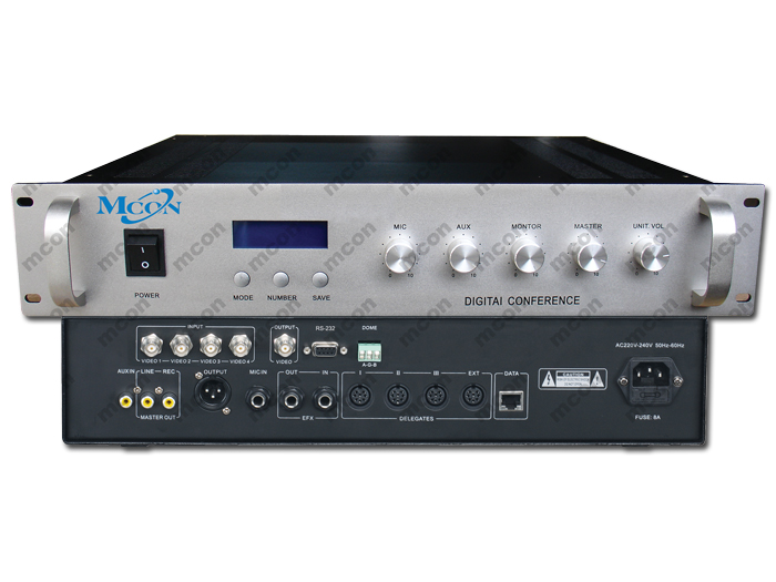 物理結(jié)構(gòu):控機與會議系統(tǒng)單元的數(shù)字控制及聲音信號采用同一電纜傳送(八芯);可獨立運作或外接電腦結(jié)合軟件同步聯(lián)動操作;主機具有下列幾個功能:會議討論、表決/選舉/評議、自動跟蹤攝像,支持IC卡簽到和按鍵簽到兩種簽到方式